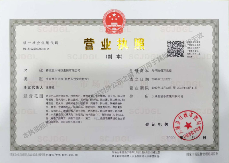版權(quán)所有:偉誠防火科技集團有限公司 地址:河北省大城縣留各莊鎮(zhèn)劉蔡間